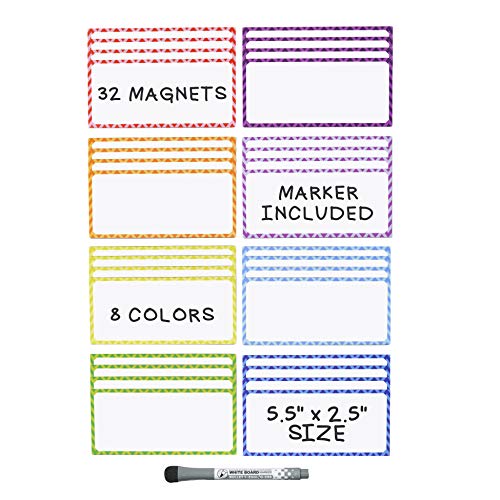 Large Magnetic Dry Erase Labels - (32 Count) w/Dry Erase Markers and Eraser Pen - Great For ...
