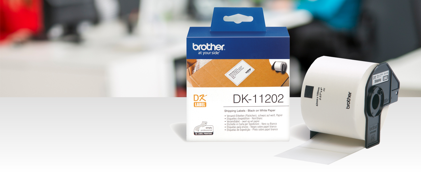 Brother Genuine DK-11202, White Shipping / Name Badge Labels 62MM X ... About this item . PRE-CUT - Genuine Brother DK-11202 black print on white paper, shipping address labels, 300 labels per roll ; USES - Pre-cut shipping address labels make light work of mailing duties, plus you can easily personalise labels to display company logos or barcodes.