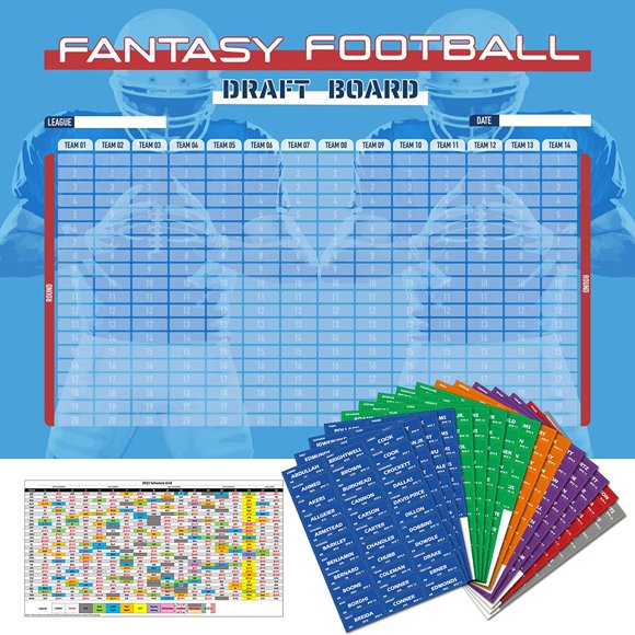 Fantasy Football Draft Board 2022 Kit, 620 Player Labels, 6 Feet x 4 ... Arrives by Thu, Sep 29 Buy Fantasy Football Draft Board 2022 Kit, 620 Player Labels, 6 Feet x 4 Feet Board(14 Teams 20 Rounds), 2022 Top Rookie, Blank Label at Walmart.com ... Up to date player list and information for 2022-2023 season. 600+ Labels are more complete than most fantasy football draft board kit. It comes with blank labels, don't ...