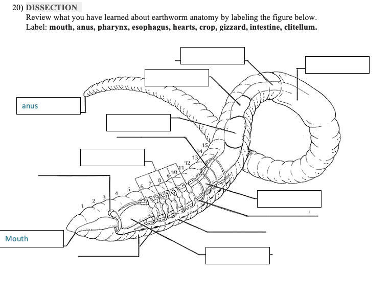 Earthworm diagram with labels. Anatomy of Earthworm: Morphology, Diagram and ... - Collegedunia Earthworms are reddish-brown in colour and have a cylindrical body. The body is also elongated and pointed in the anterior region, with a rounded posterior region. The body is segmented, with approximately 100 to 120 metameres, or short segments. On the dorsal surface of the body, there is a dark median mid-dorsal blood vessel. Earthworm Dissection - The Biology Corner Instructions and guide to dissecting the earthworm which includes several images to supplement a laboratory experience. Students start with the external anatomy, locate structures and then use scissors to open the coelom of the worm. A final analysis asks students to label a diagram of the worm. Earthworm - Animals Although native to Europe, earthworms are found throughout North America and western Asia. They do not live in deserts or regions where there is permafrost or permanent snow and ice. Typically only a few inches (7 or 8 centimeters) long, some members of this species have been known to grow to a snakelike 14 inches (35 centimeters). Earthworms' bodies are made up of ringlike segments called annuli. Morphology and Anatomy of Earthworm - Diagram, Reproductive System and ... The Circulatory System of an Earthworm . The earthworms exhibit a closed type of blood vascular system; in this type of system, the blood is confined to the heart and blood vessels. Heart:- There are four pairs of tubular hearts that are present in an earthworm. The lateral hearts which are the two anterior pairs of the heart are present in the ...